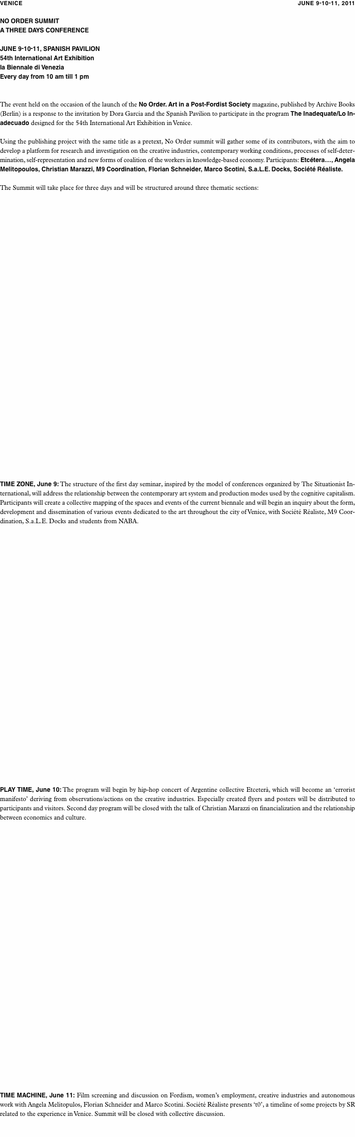 VENICE	June 9-10-11, 2011  NO ORDER SUMMIT A THREE DAYS CONFERE